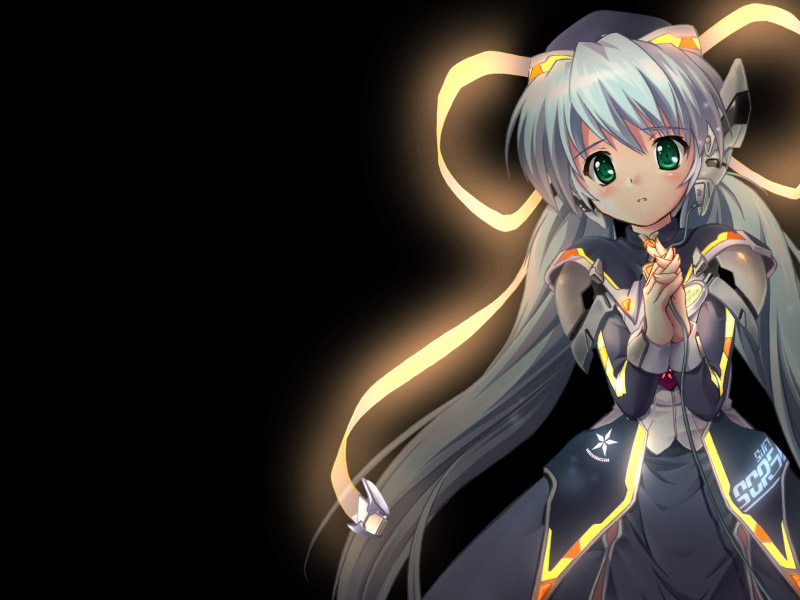 Description: A anime character with long hair and green eyes holding a sword in her hand and wearing a black outfit.
