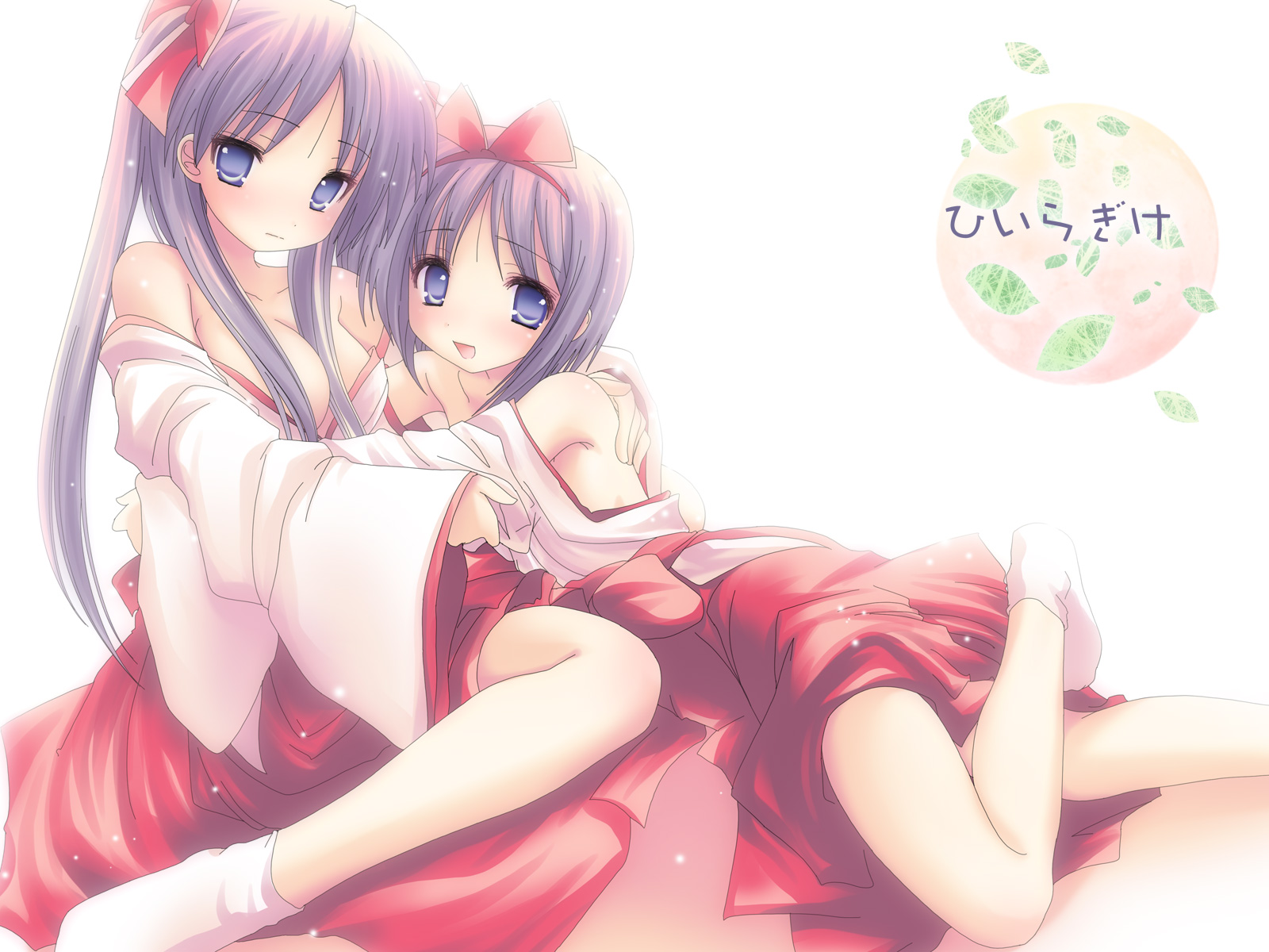 Description: Two anime girls laying on the ground with their arms around each other and one girl with her head on her shoulder.