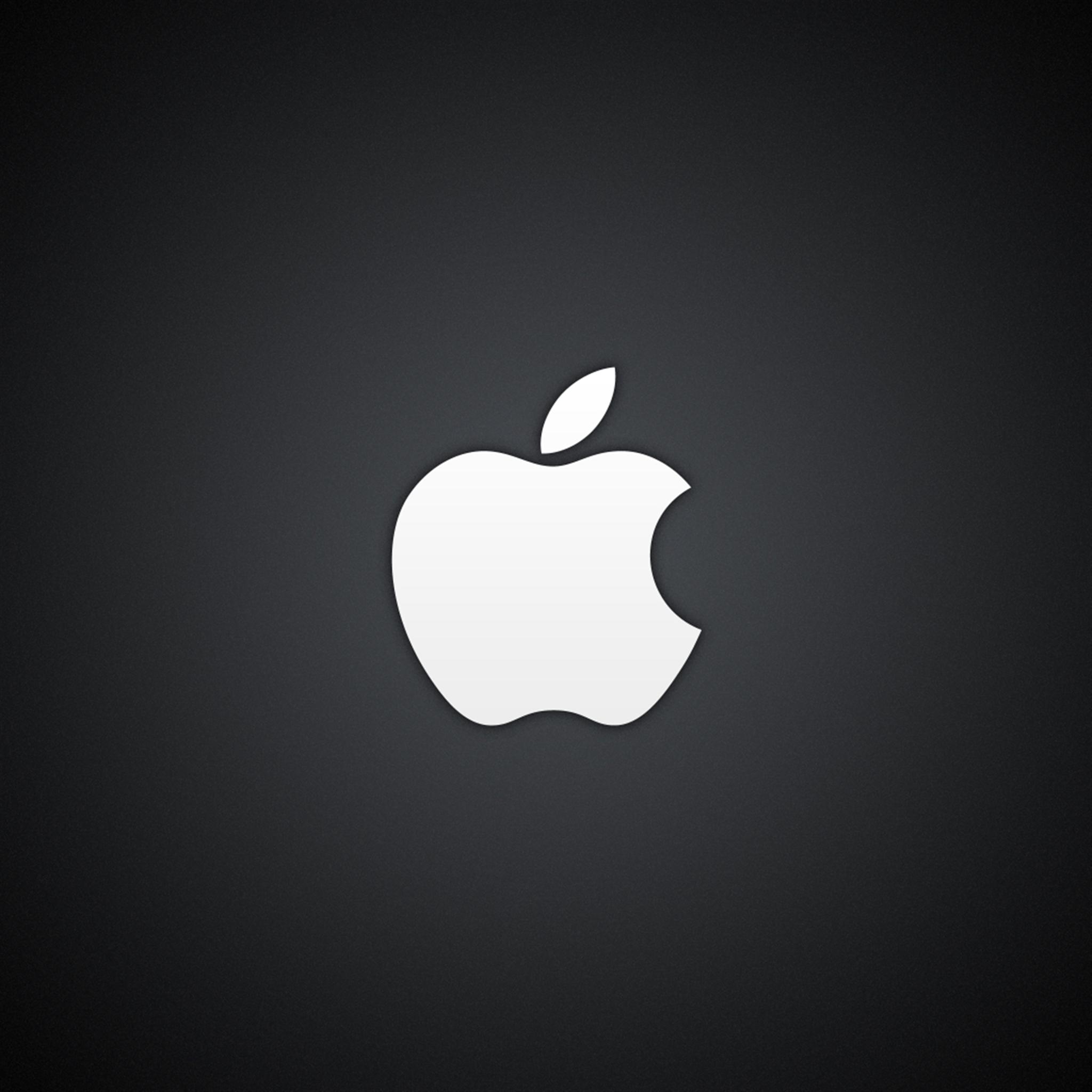 Description: An apple logo on a black background with a shadow of an apple on it's side and a white apple on the top.