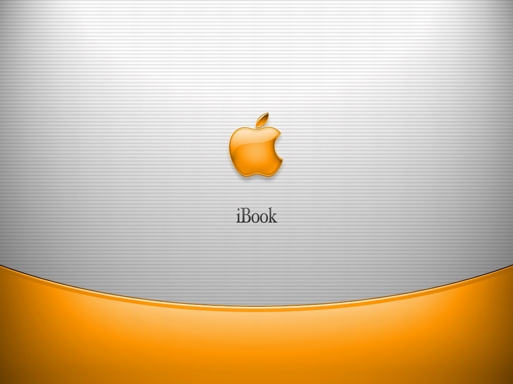 Description: An apple logo on a silver and orange background with a silver apple on top of it and the words apple on the bottom.