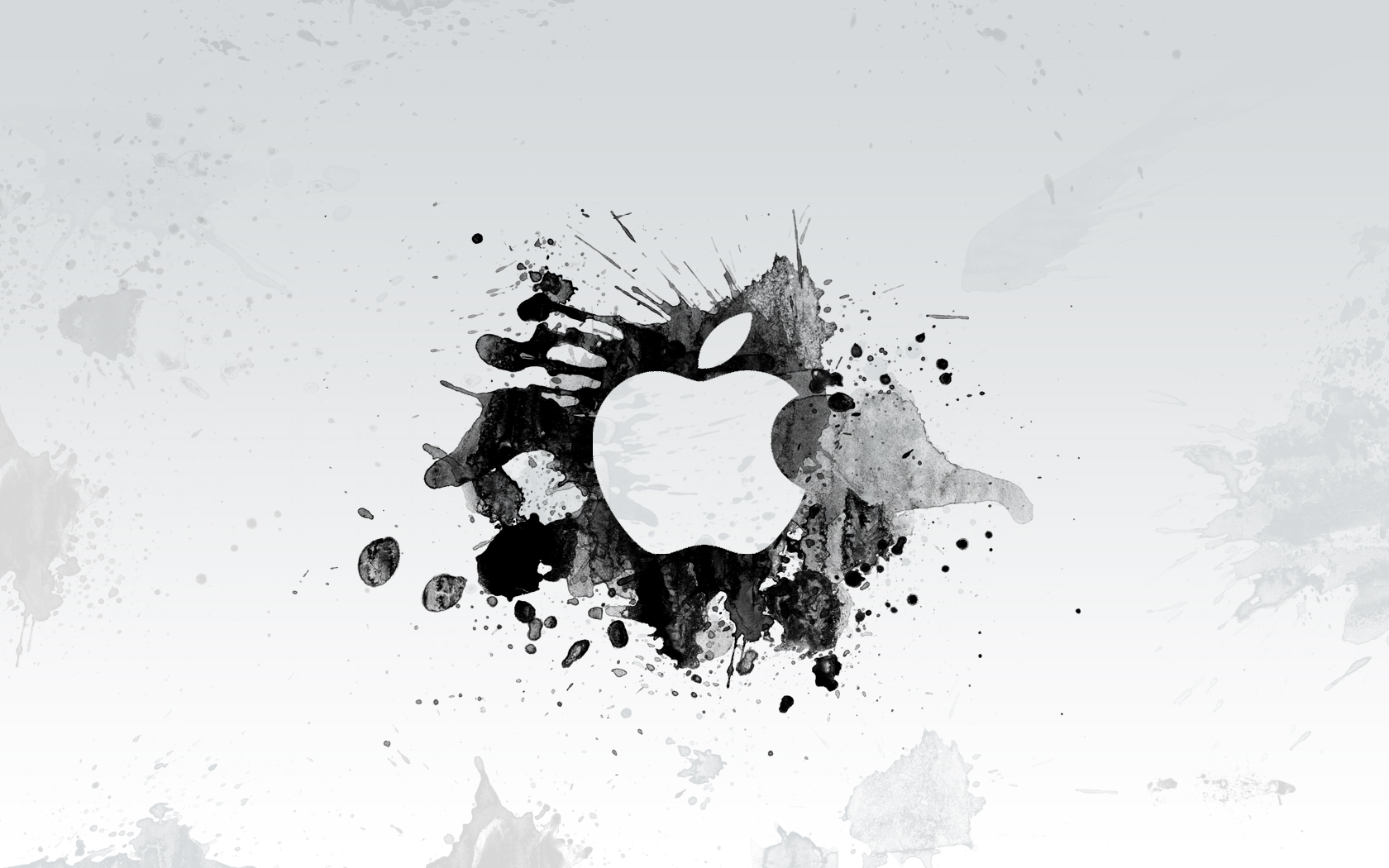 Description: An apple logo is shown on a white background with black spots and splashes of paint on it.