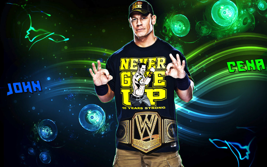 Description: A man in a black shirt and a green and blue background with a neon light and a neon glow.