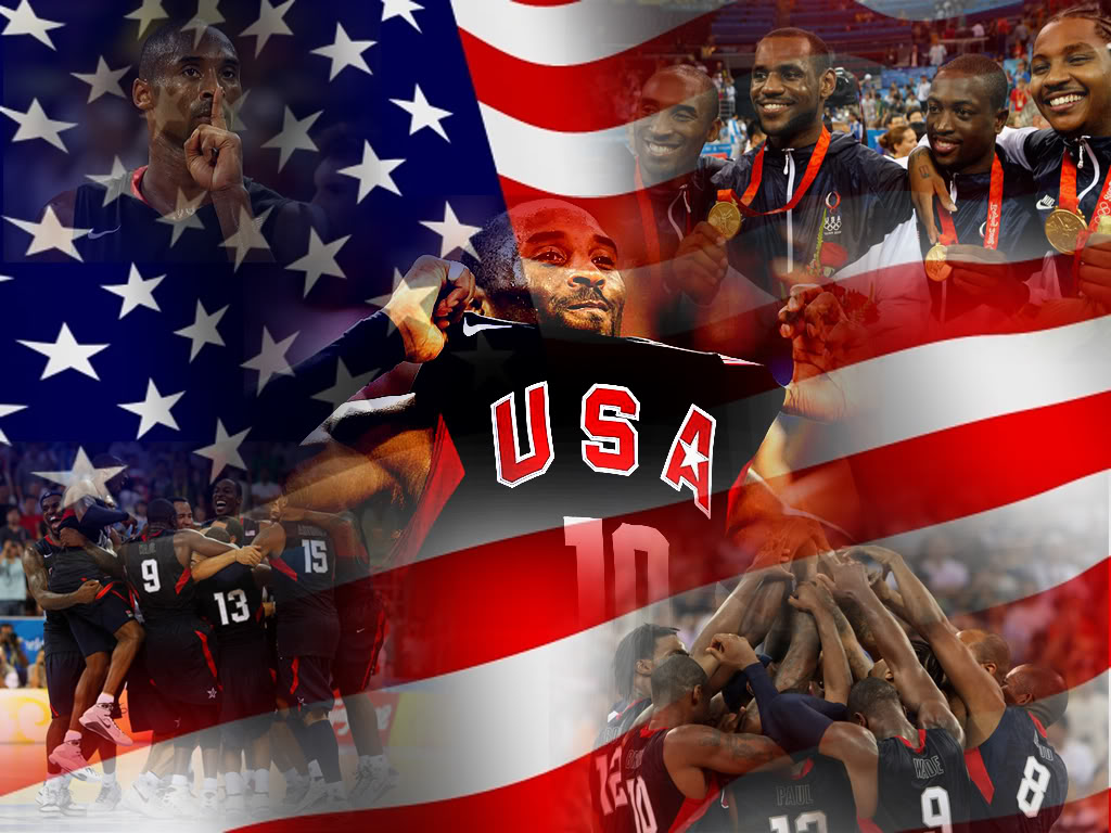 Description: A collage of a team of athletes with the american flag in the background and a collage of the team.