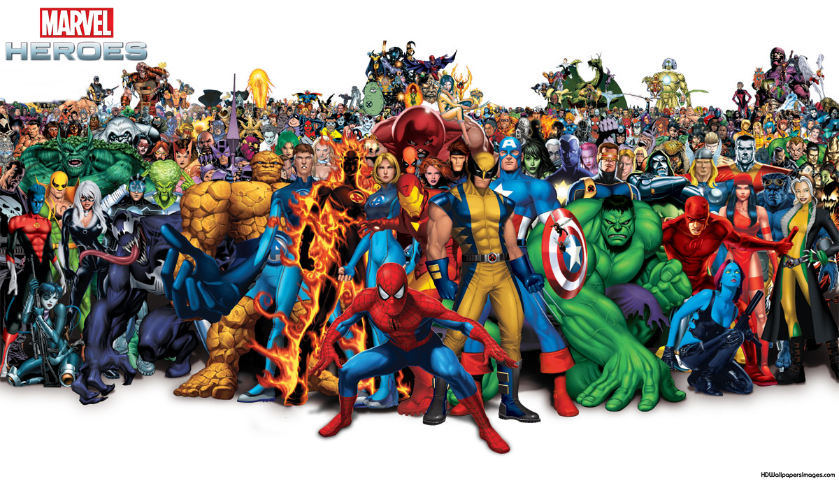 Description: A group of avengers characters standing in front of a city skyline with the words.