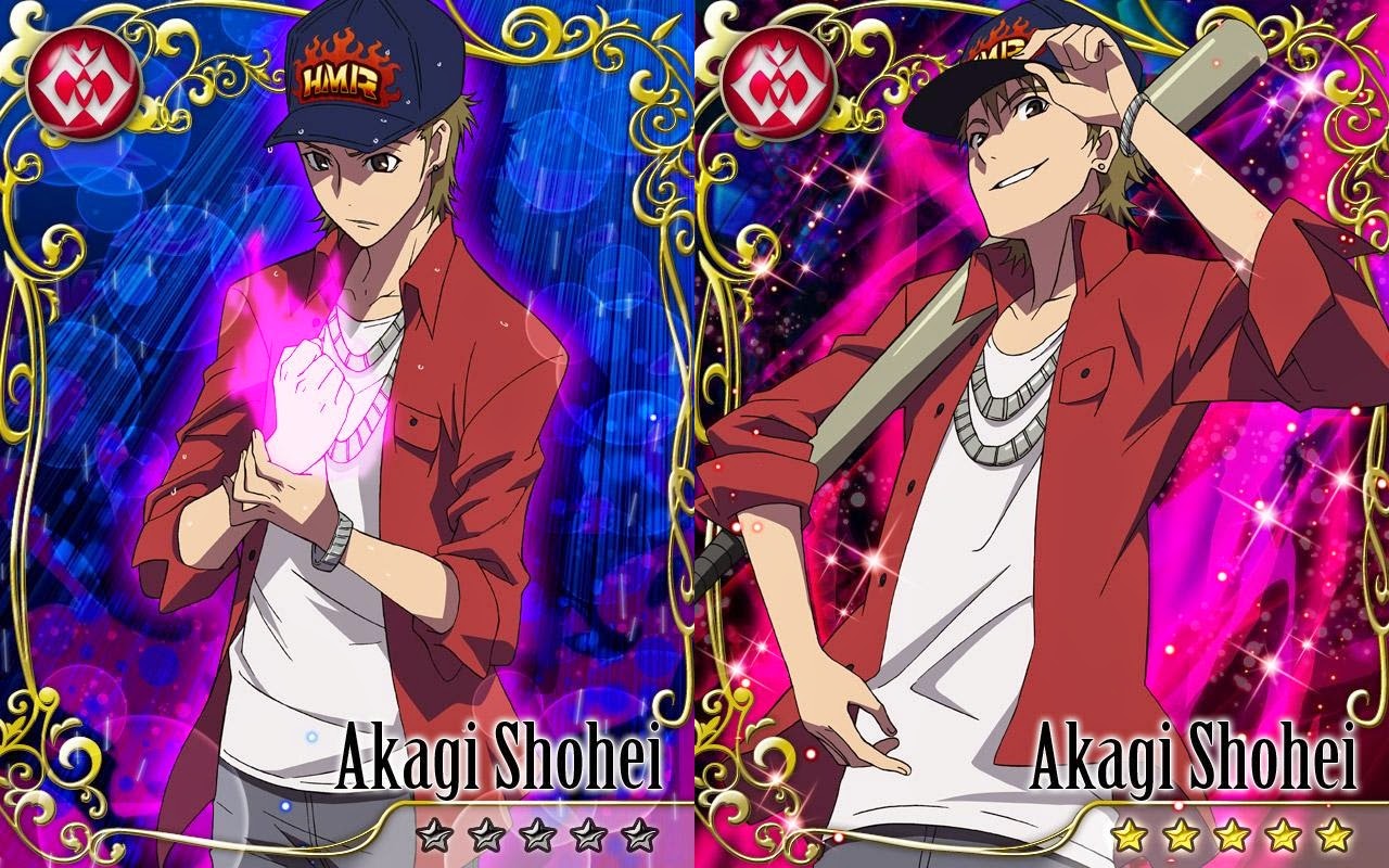 Description: A couple of anime characters with a purple background and a pink background with stars and a gold frame with a picture of them.