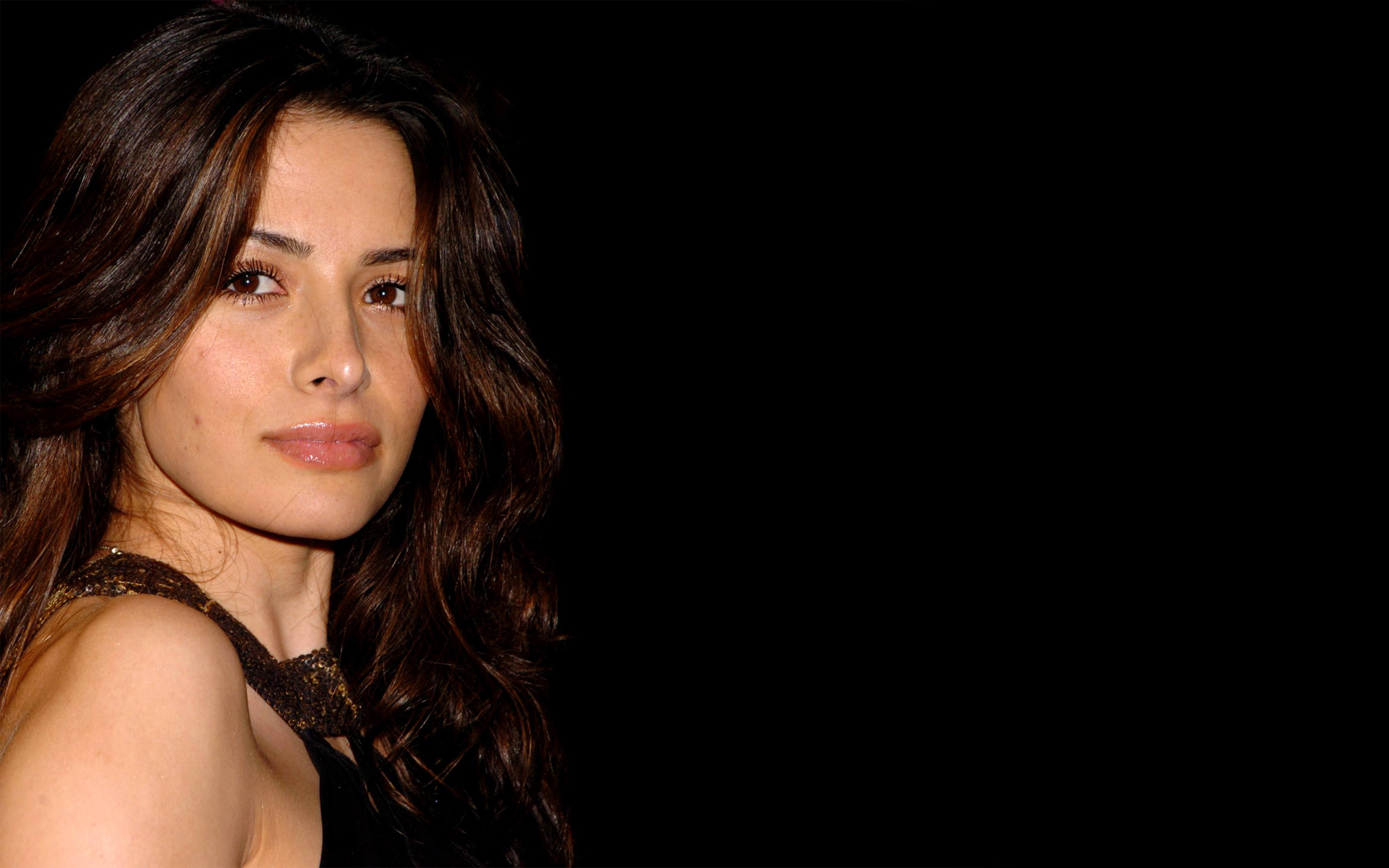 Description: A woman with long hair and a black dress posing for a picture with a black background and a black background.