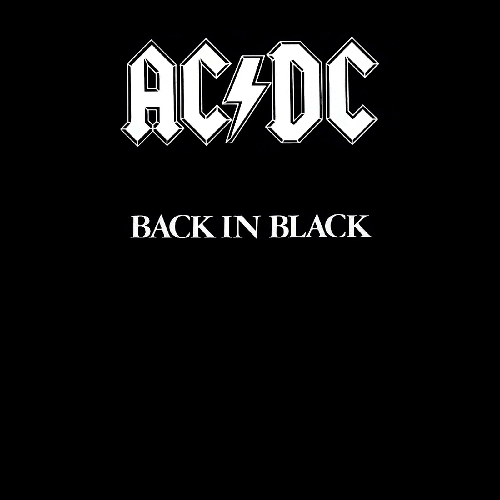 Description: A black background with the words back in black on it and a white font that reads ac / dc.