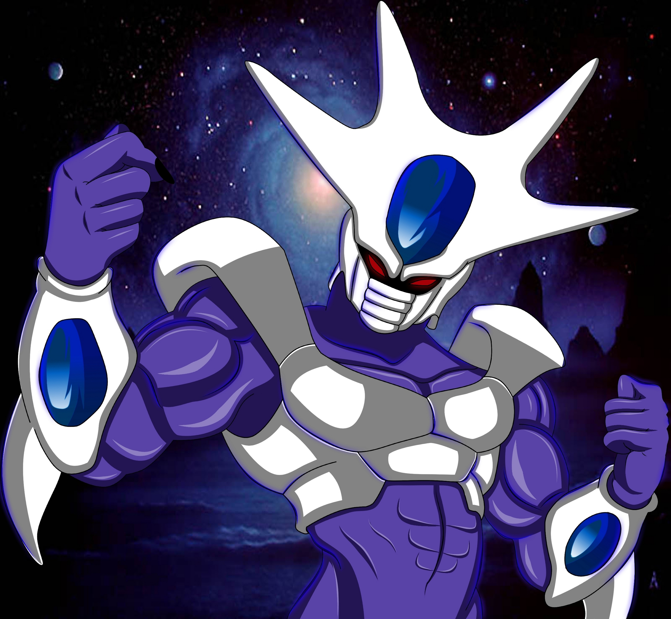 Description: A cartoon character with a blue and white outfit and a purple helmet and a white and blue body and arms.