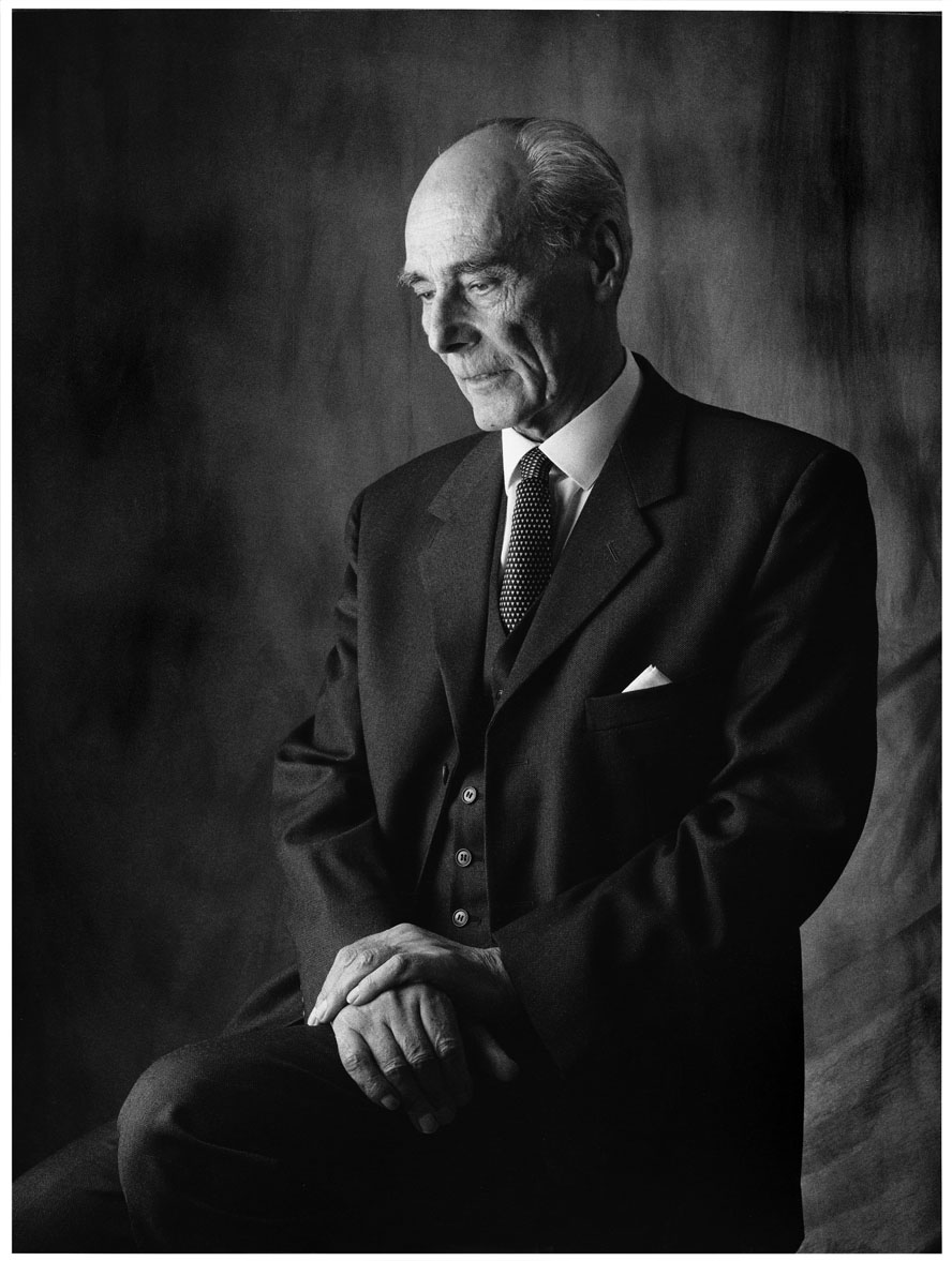 Description: A man in a suit and tie sitting down in a chair with his hands on his knees and his eyes closed.