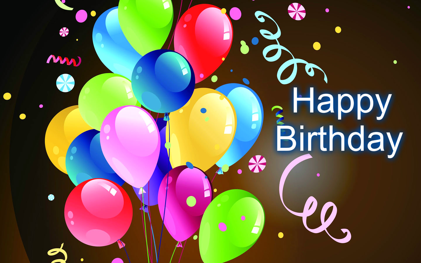 Description: A bunch of balloons are in the air with a happy birthday message on it's side.