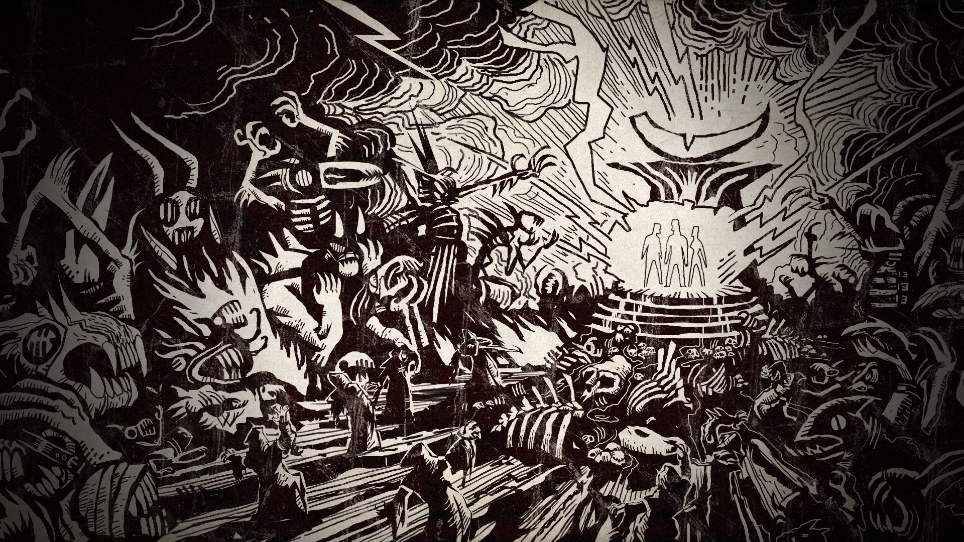 Description: A wall with a painting of a band playing on it's side and a band playing on the other side.