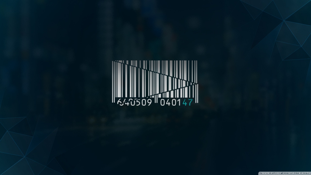 Description: A bar code on a dark background with a blue triangle in the middle of it and a blue triangle in the middle.