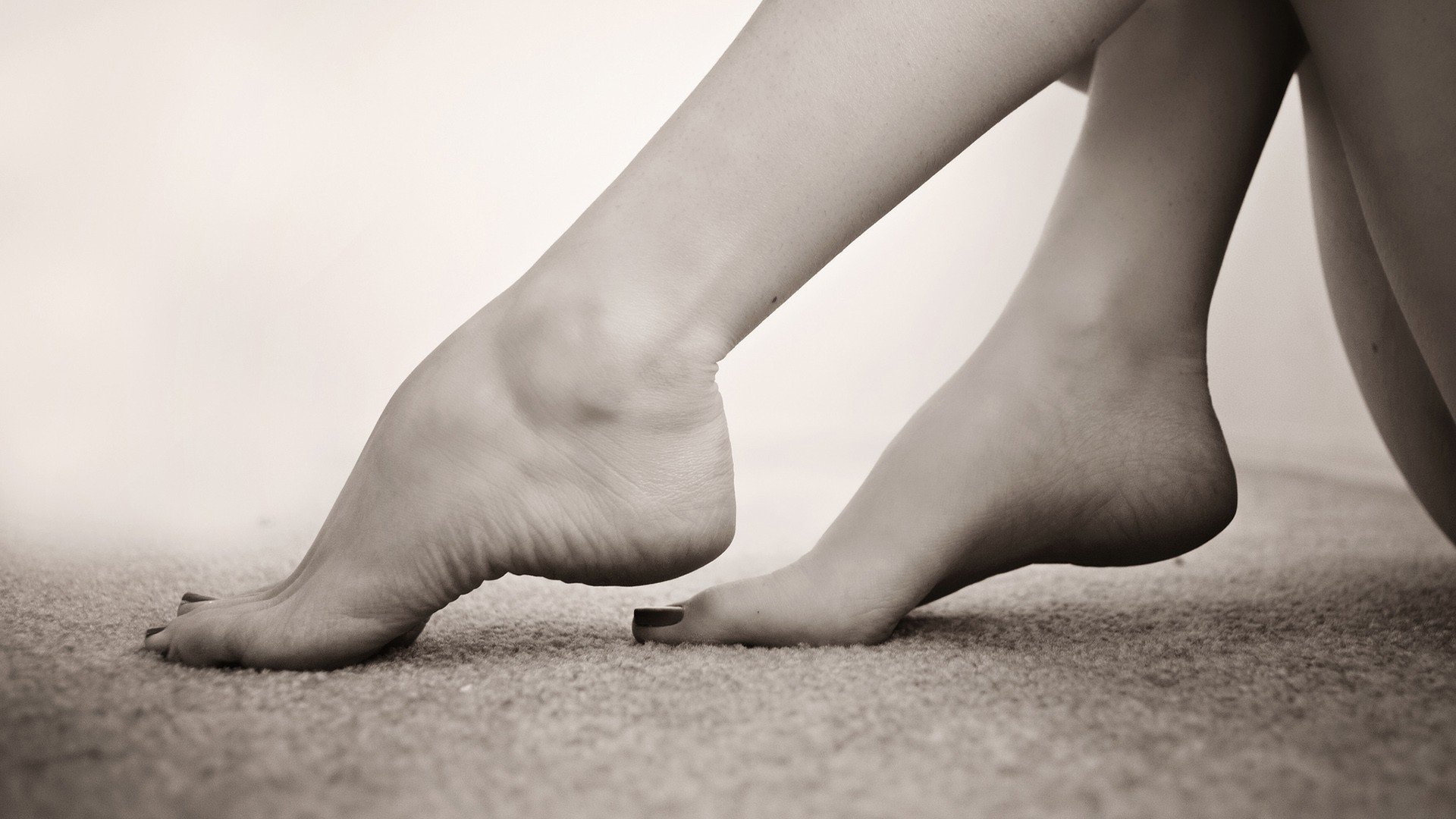 Description: A person with bare feet sitting on the floor with their feet crossed and their legs crossed with their feet crossed.