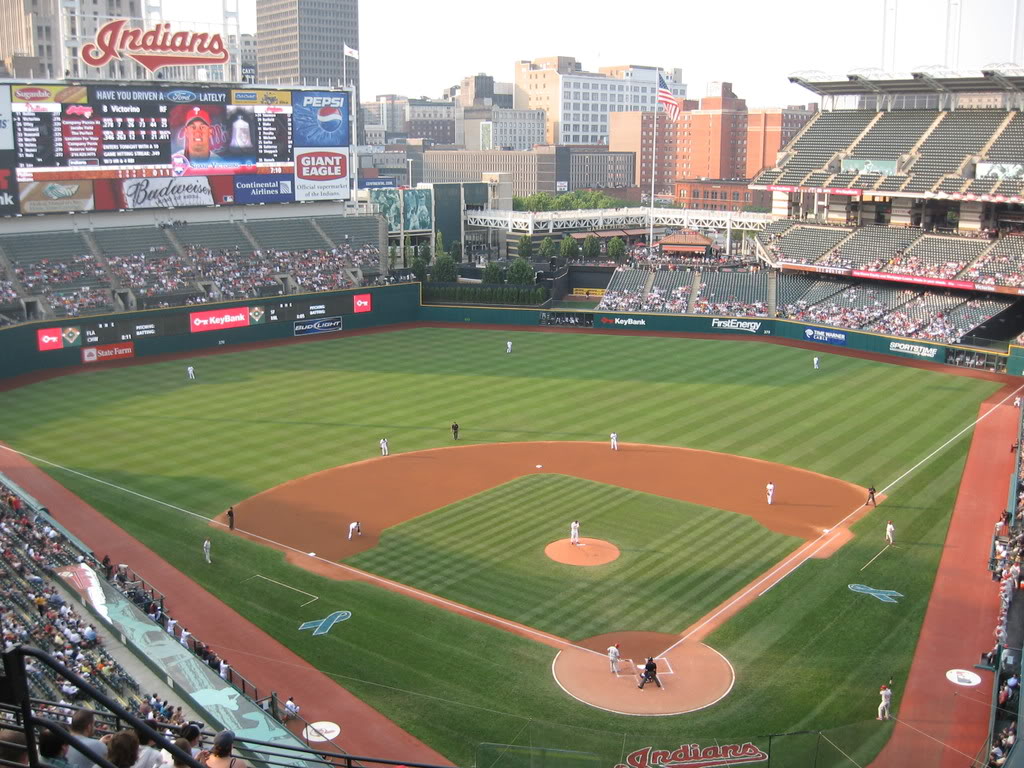 Description: A baseball field with a lot of people playing baseball on it and a lot of people watching it from the stands.
