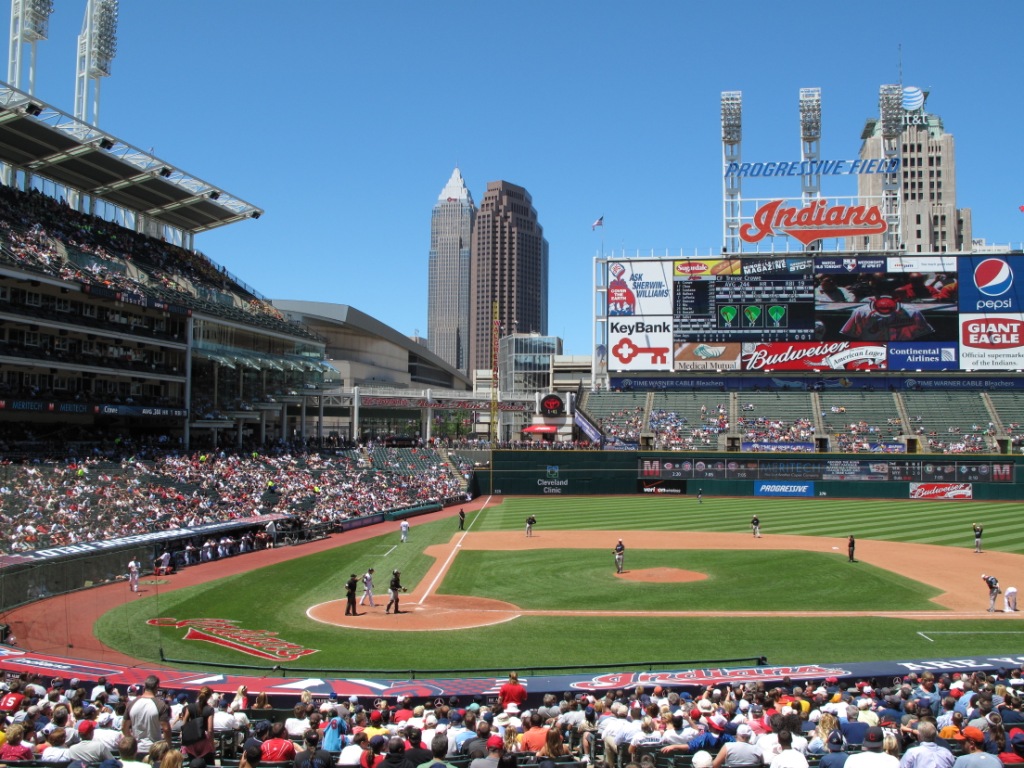 Description: A baseball game is being played in a stadium with a crowd of people watching it from the stands and a view of the field.