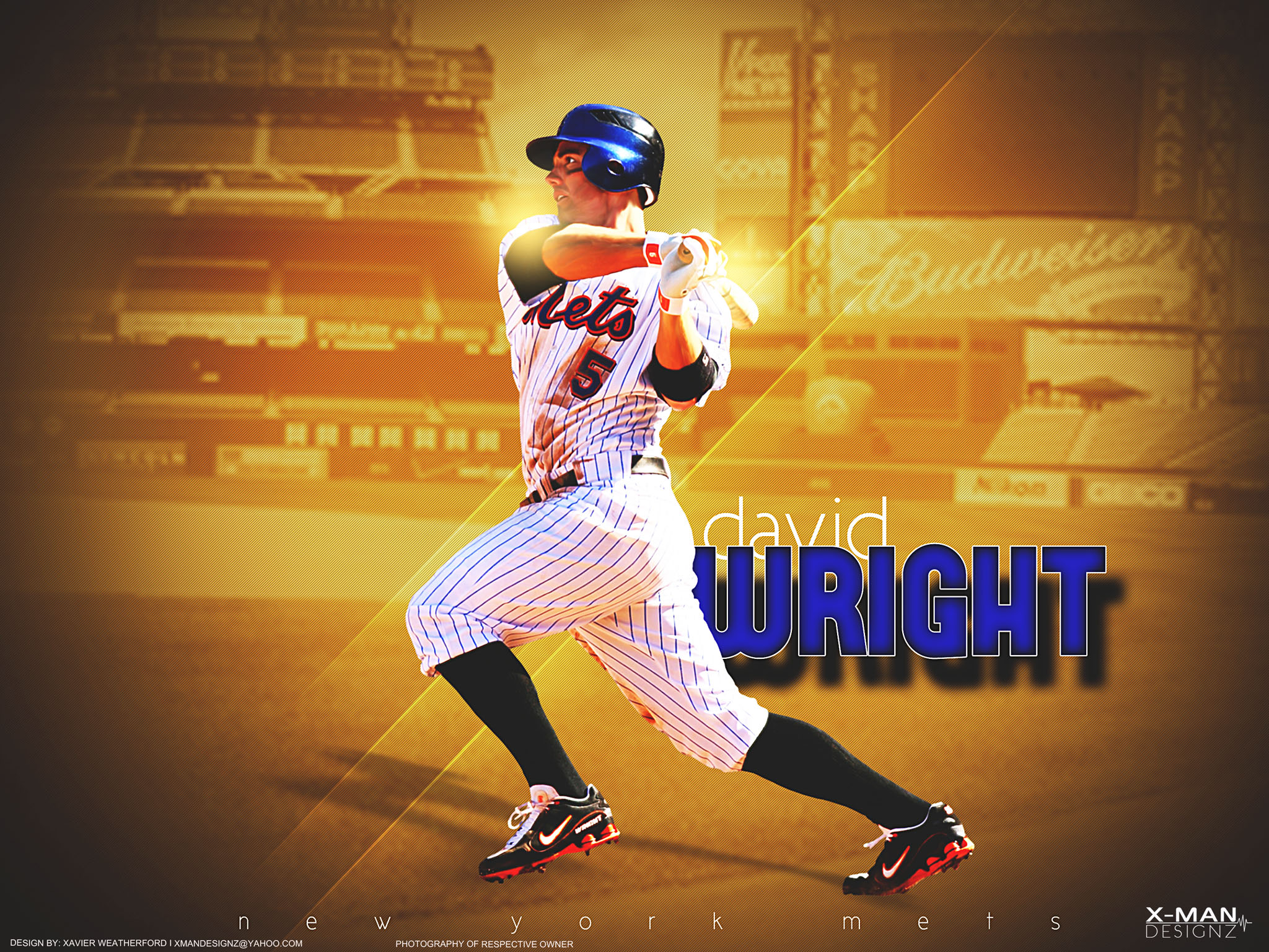 Description: A baseball player holding a bat on a field with a stadium in the background and the words david wright on it.