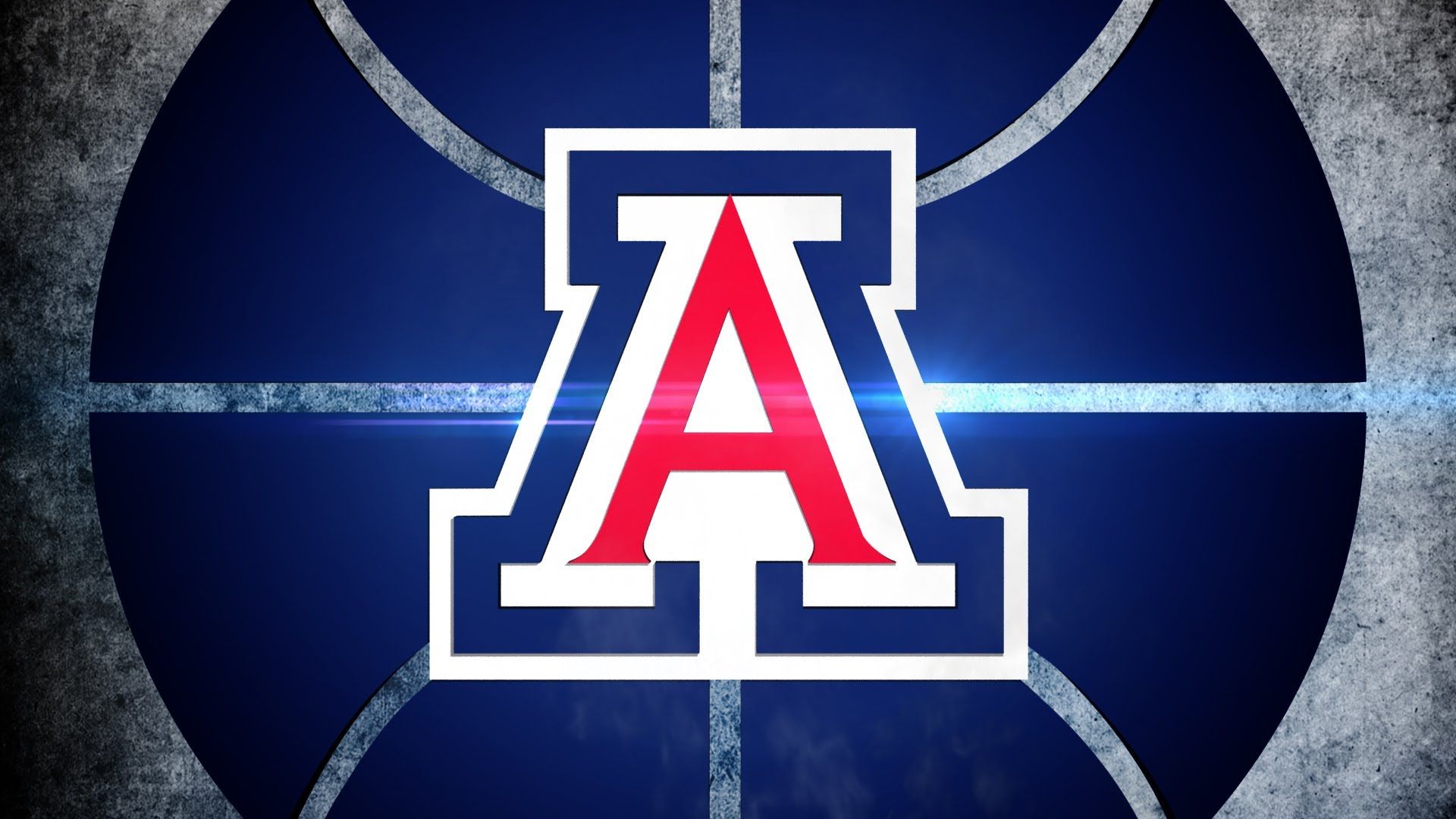 Description: A basketball with the letter a on it and a blue background with a white and red stripe and a blue and white circle with a red letter.