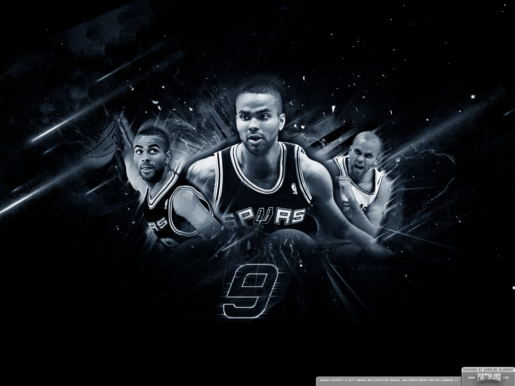 Description: A group of basketball players standing next to each other in a black background with stars and smoke behind them.