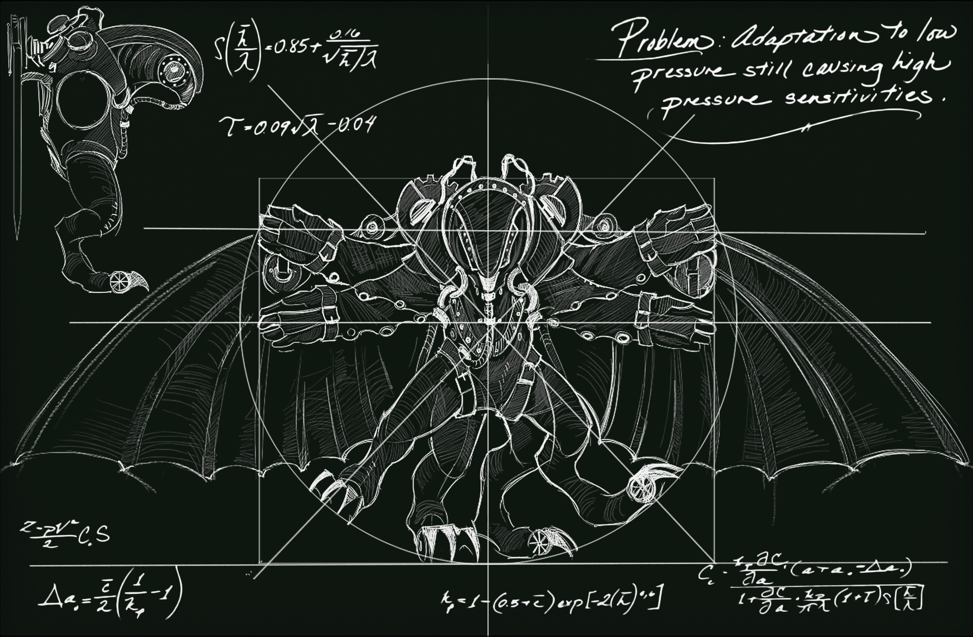 Description: A drawing of a bat with a drawing of a demon on it's back and a drawing of a demon on the front.