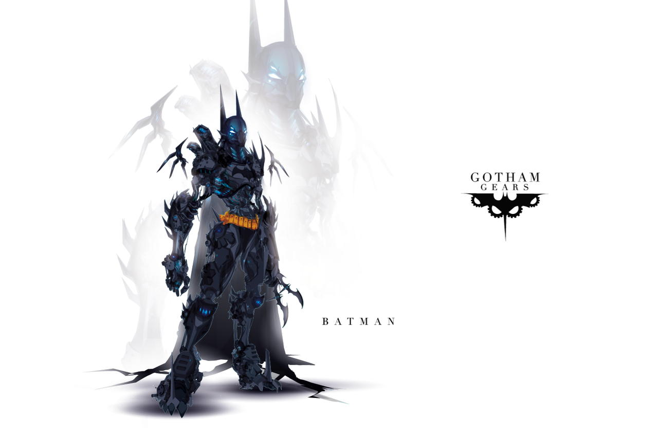 Description: A batman character standing in front of a white background with the words batman written on it and a batman symbol.