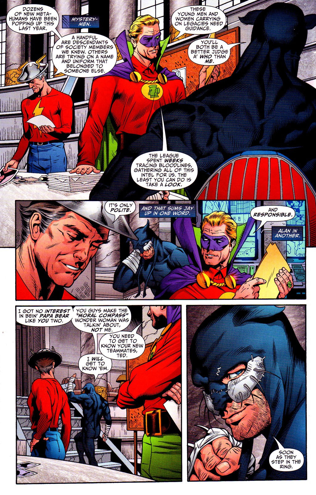 Description: A comic page with a batman and a man in a red suit and a red cape and a black mask.