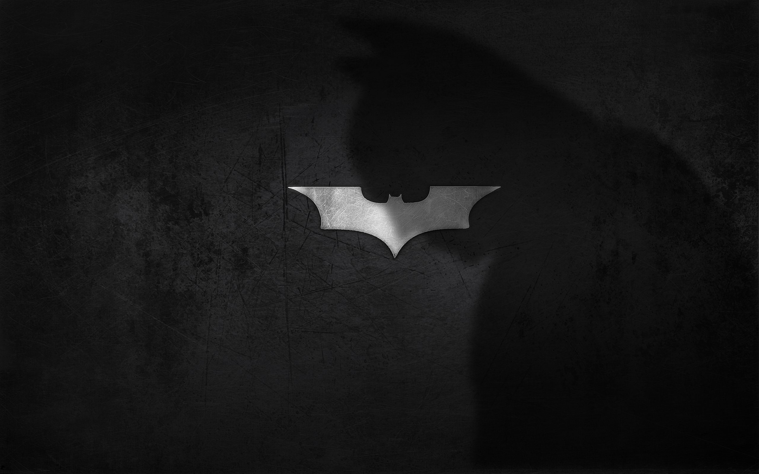 Description: A batman logo is shown in the dark of night with a shadow of a bat on the wall behind it.