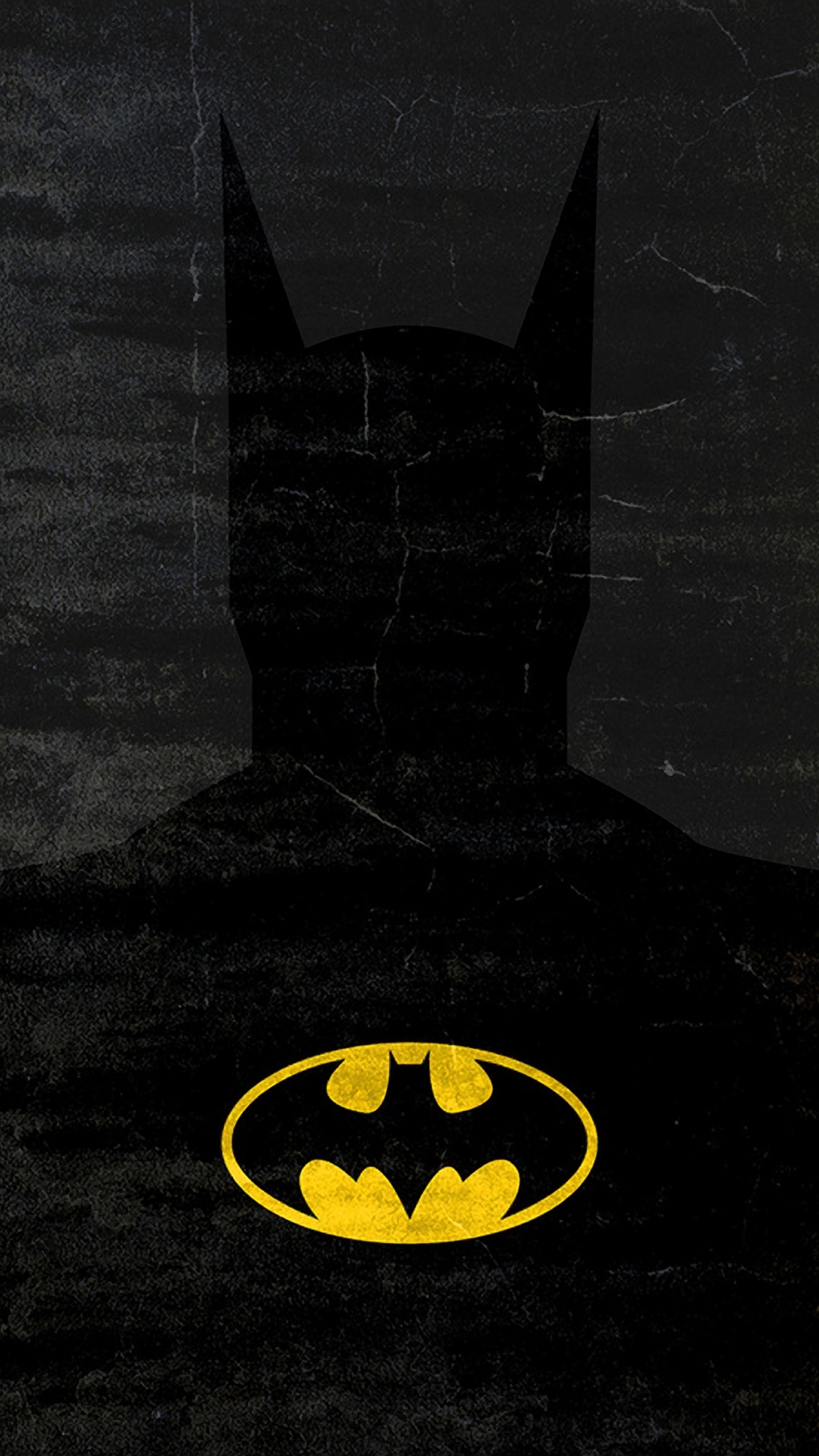 Description: A batman silhouette with the symbol of the batman on it's chest and a yellow bat on the chest.