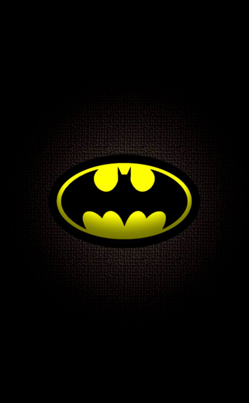 Description: A batman symbol on a black background with yellow lights in the dark room of the batman symbol.