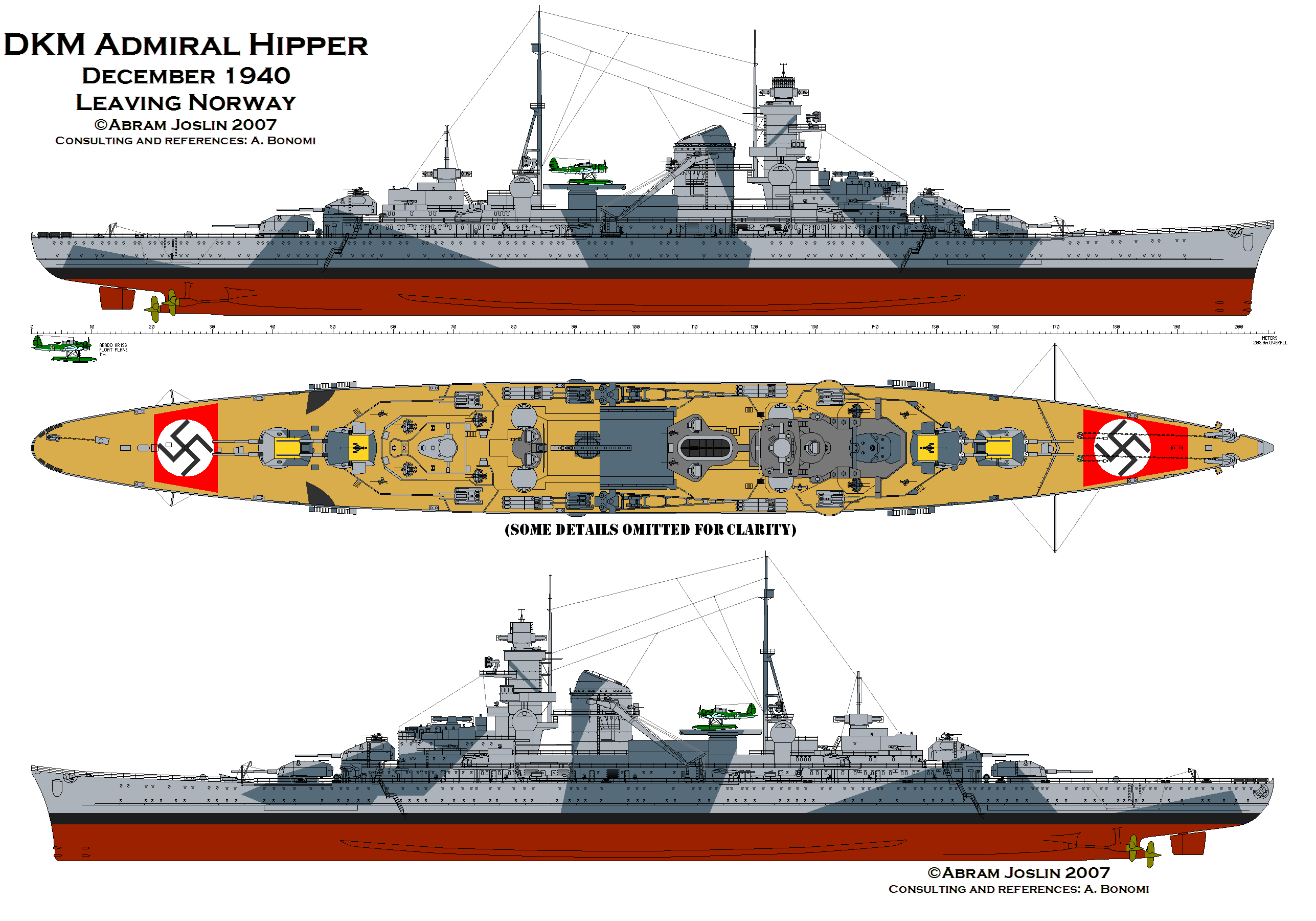 Description: A drawing of a battleship and a smaller one with a smaller one on it's side and a smaller one on the other side.