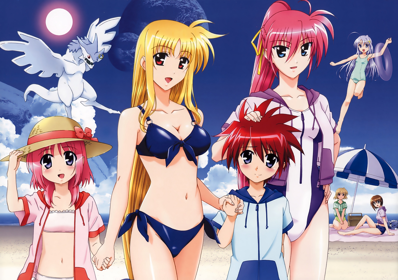 Description: A group of women in bikinis standing on a beach with a sky background and a sun setting behind them.