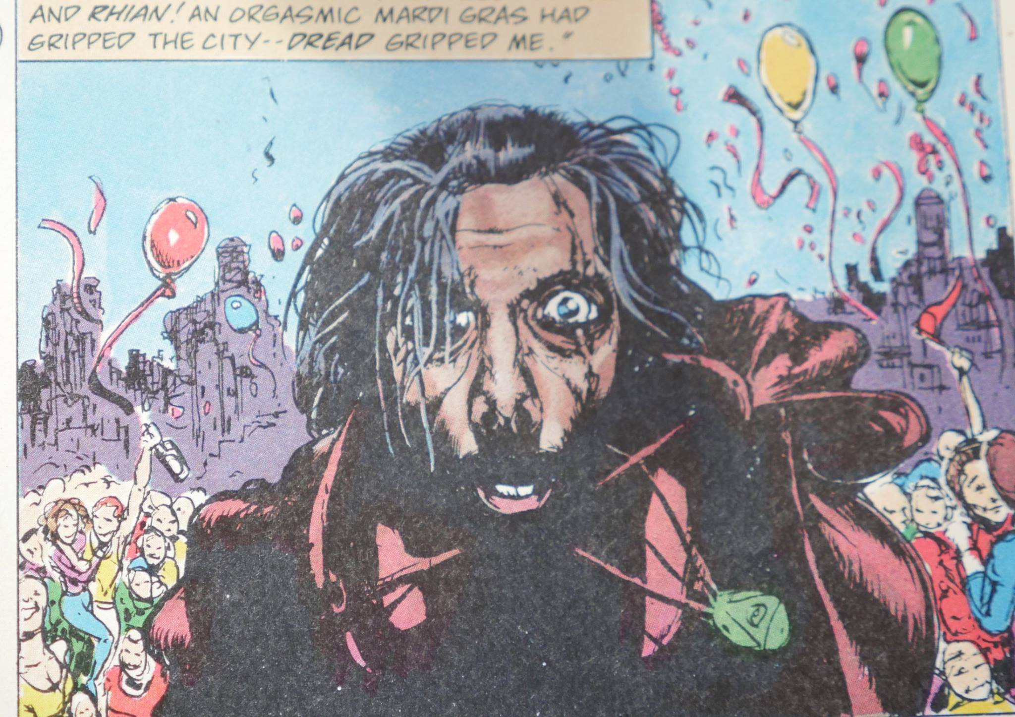 Description: A comic strip with a man with a beard and a red jacket on and balloons in the air and a cartoon of a man with a beard.