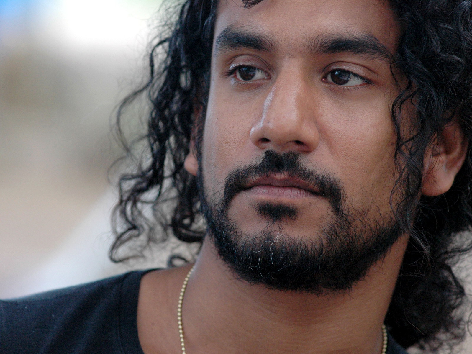 Description: A man with a beard and a necklace on his neck looking at the camera with a serious look on his face.