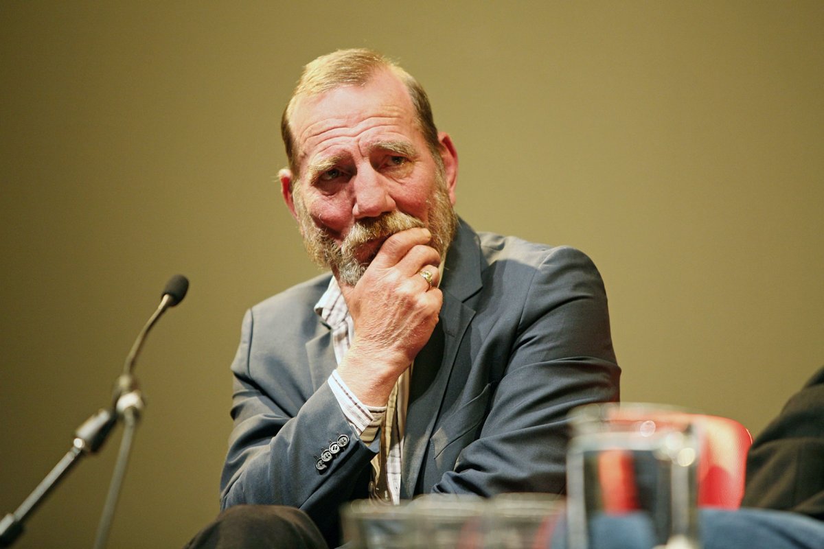 Description: A man with a beard and a suit sitting in front of a microphone and looking at the camera with a serious look on his face.