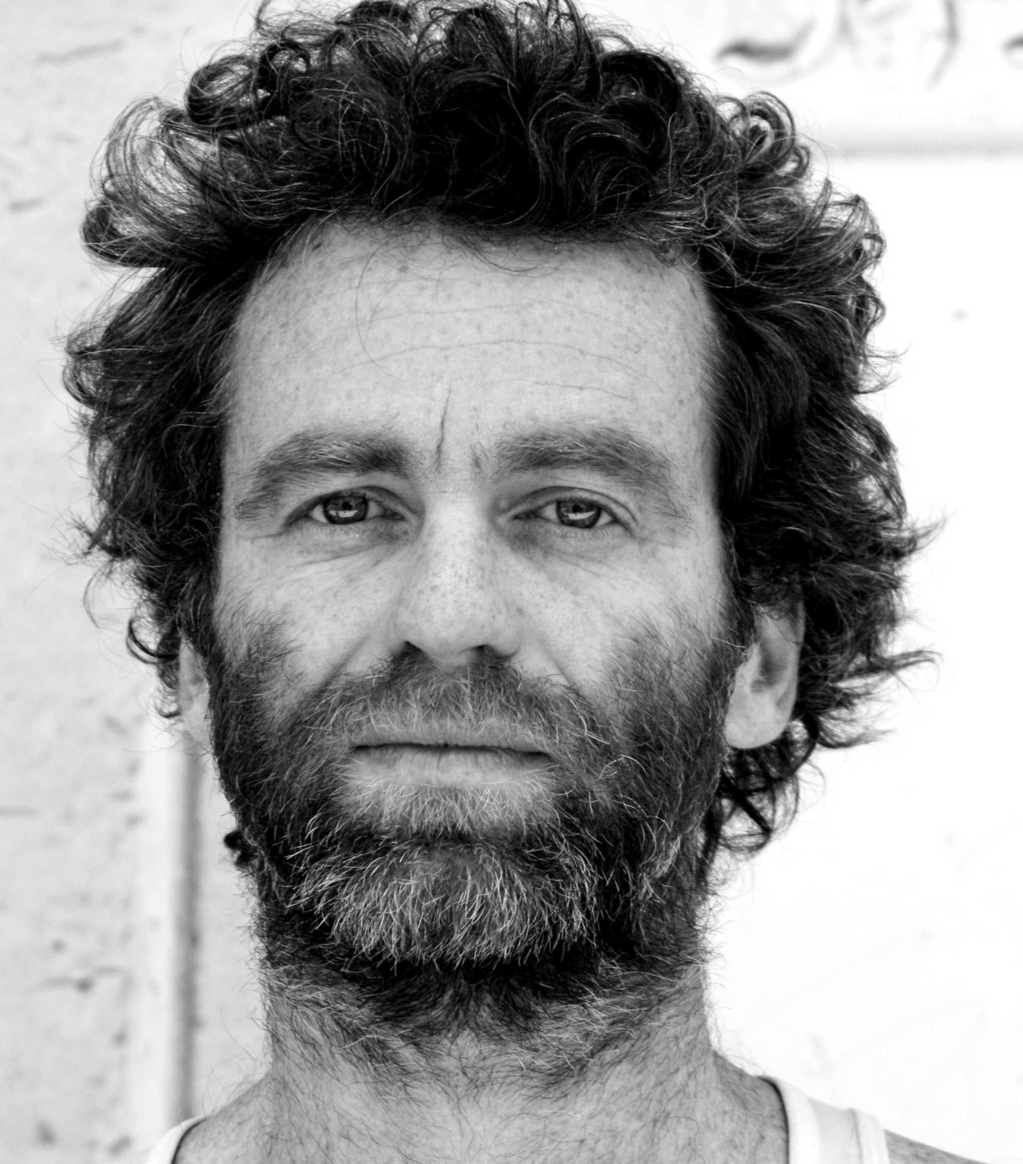 Description: A man with a beard and a white shirt is smiling for the camera with a serious look on his face.