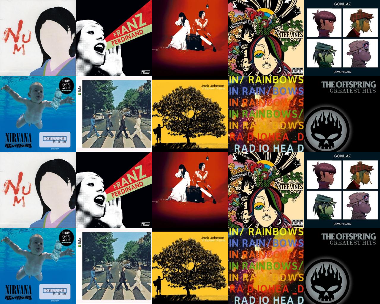 Description: A series of photos of the beatles and the beatles album covers with the same artwork on them.