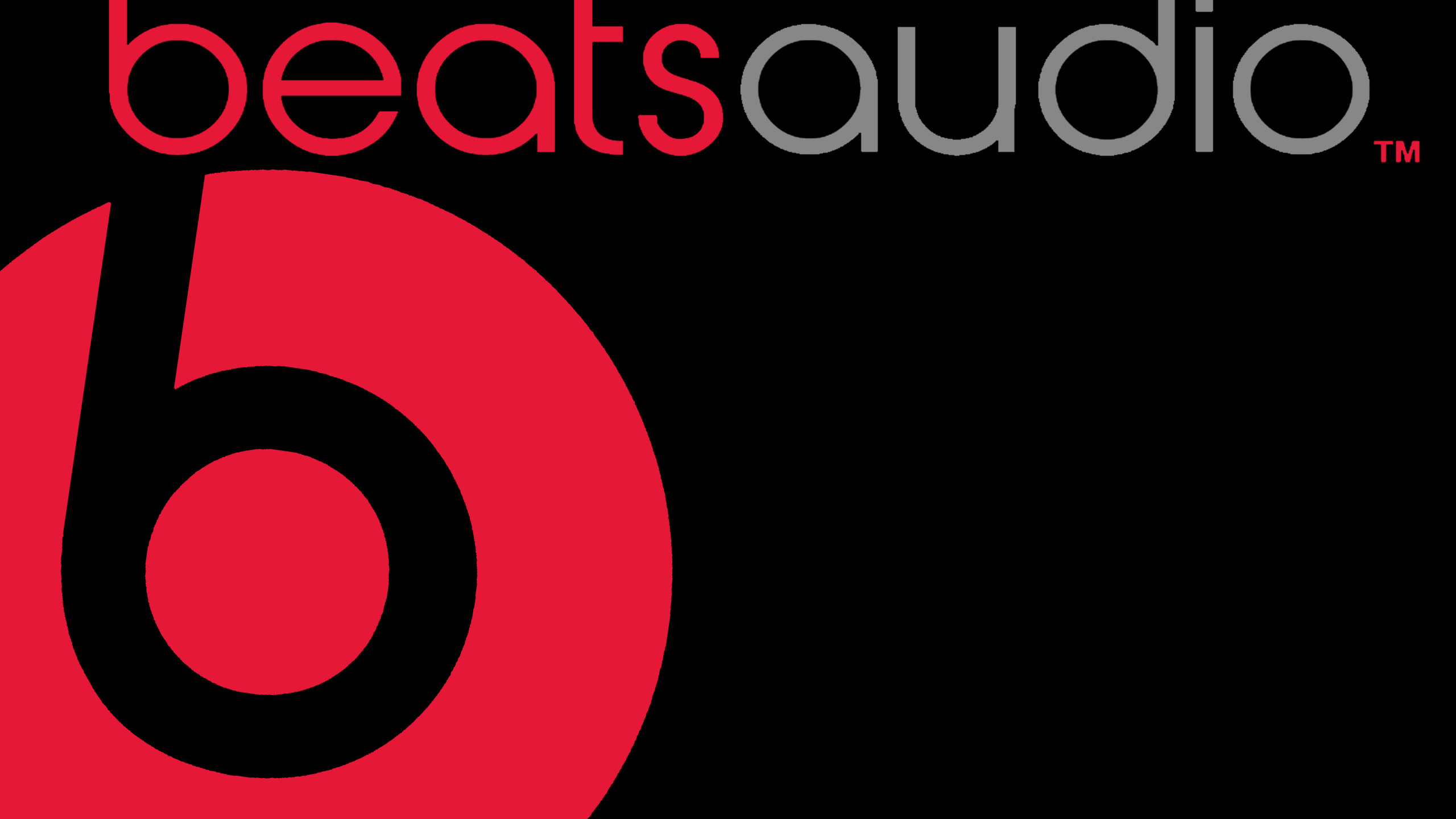 Description: A red and black logo with the words beats audio on it's side and a black background with a red and white logo.