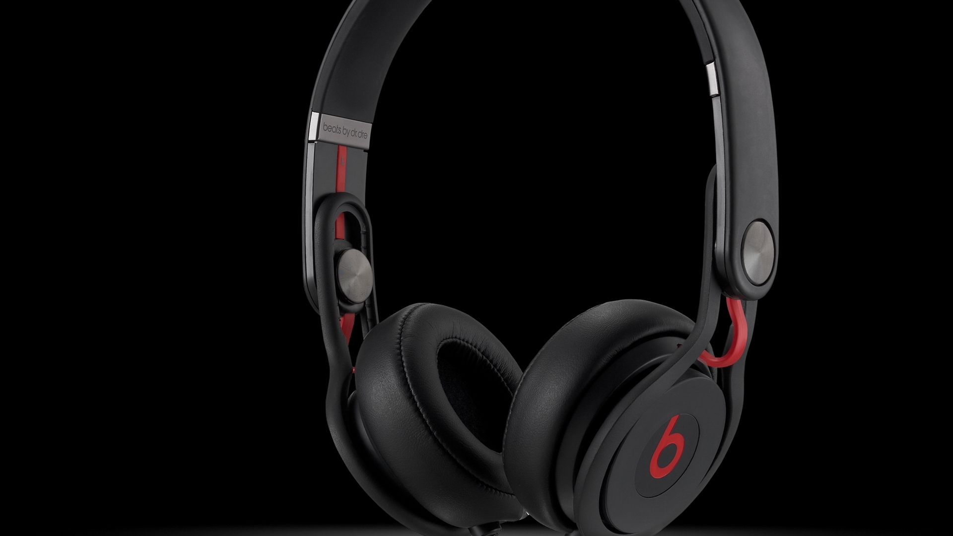 Description: A pair of beats by dr dre headphones on a black background with red accents and a black background.