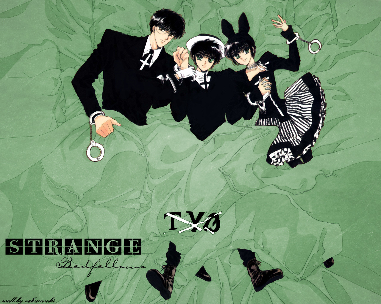 Description: A couple of people laying on top of a bed with scissors in their hands and a green background with a black and white design.