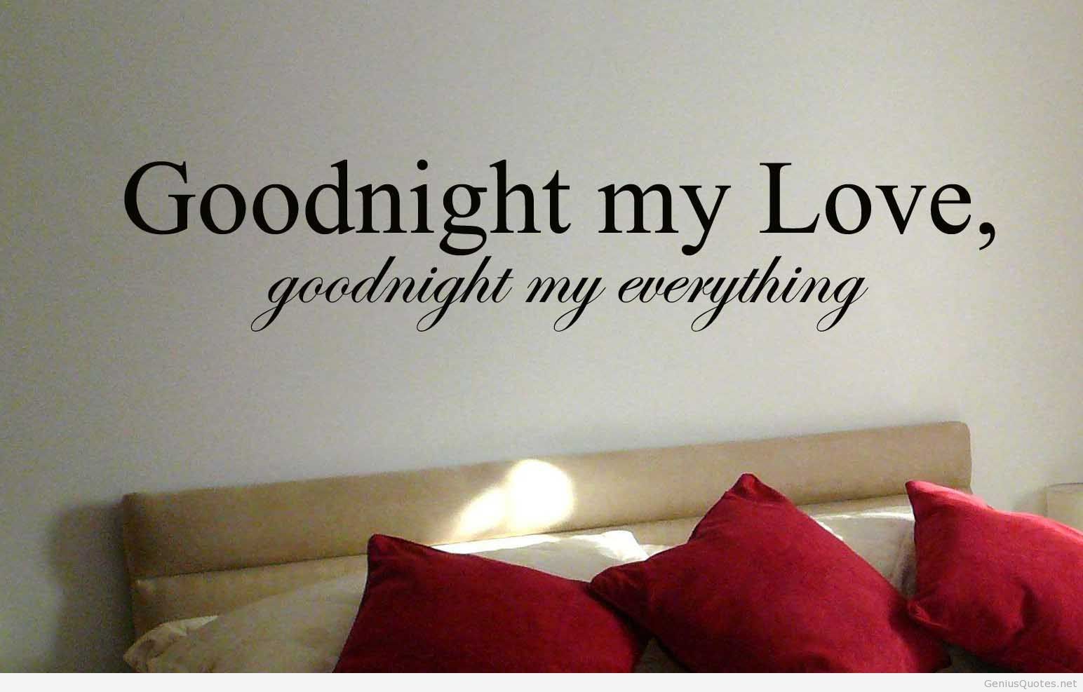 Description: A bedroom with a bed and a wall with a quote on it that says goodnight my love.