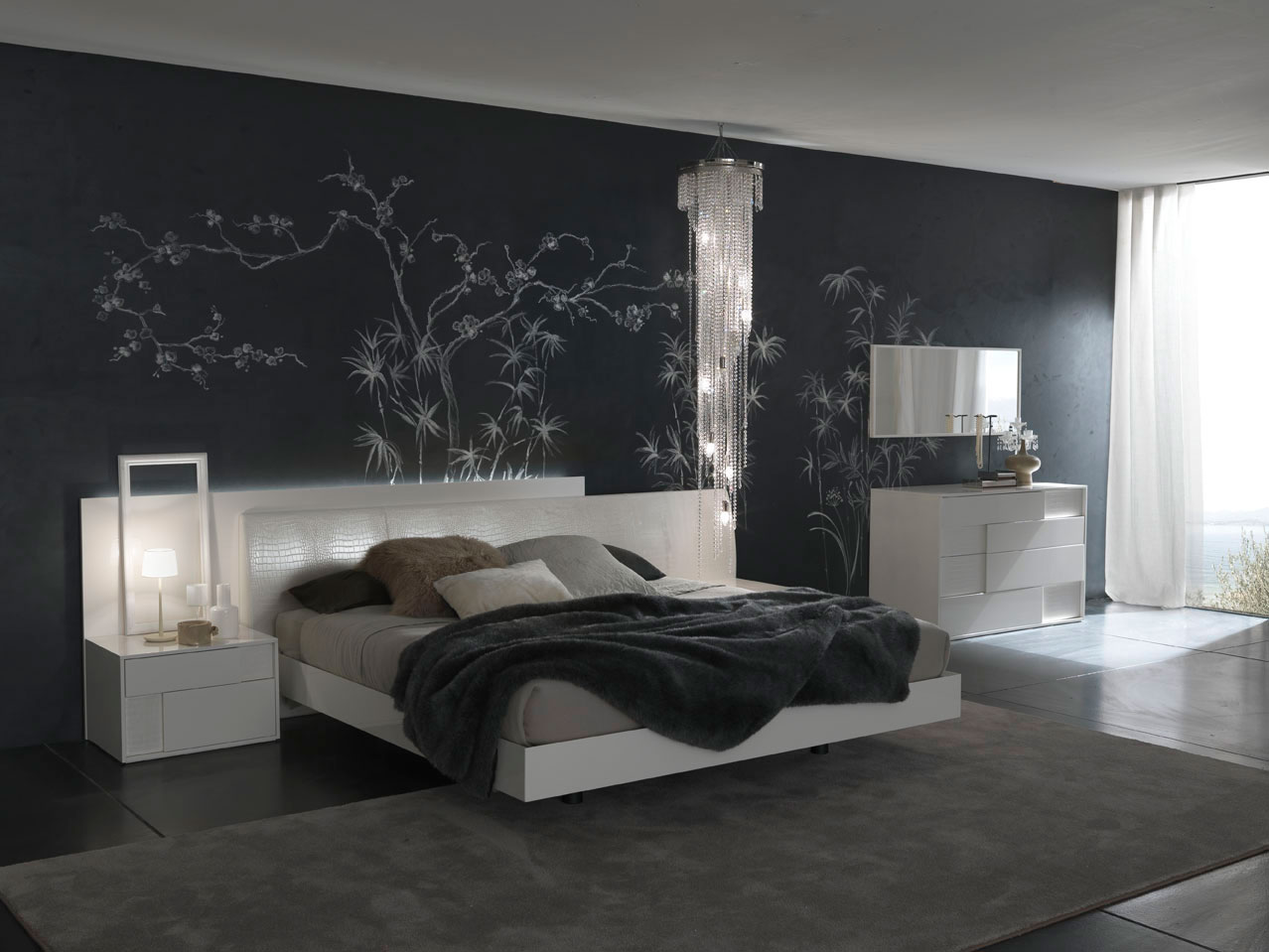 Description: A bedroom with a bed.