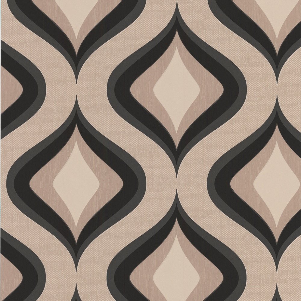 Description: A beige and black wallpaper with wavy shapes on it's sides and a black and white background.