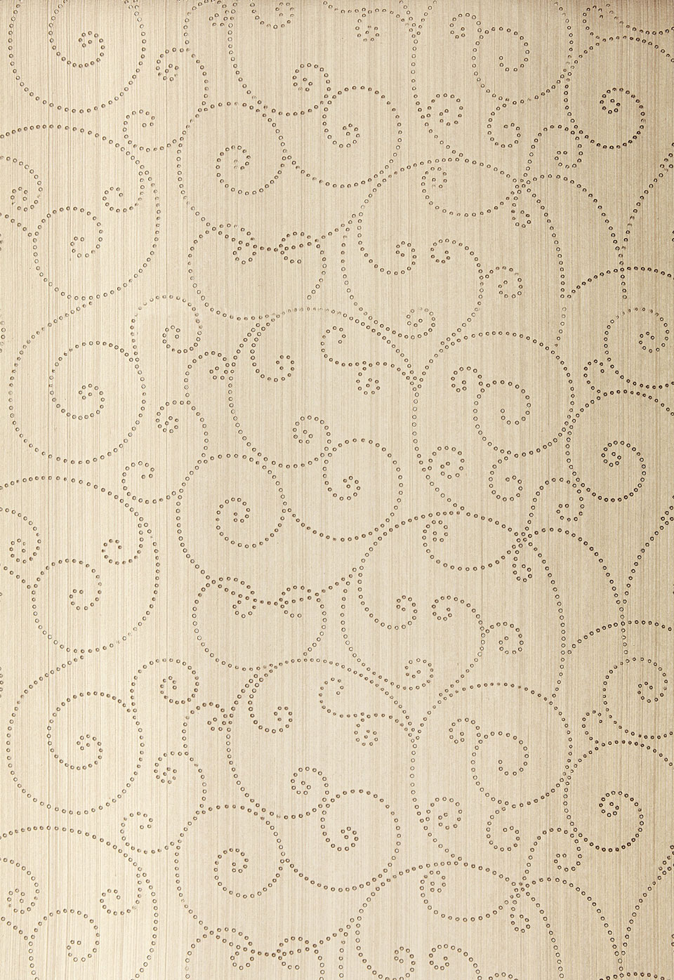 Description: A beige wallpaper with a pattern of small circles and dots on it's surface.