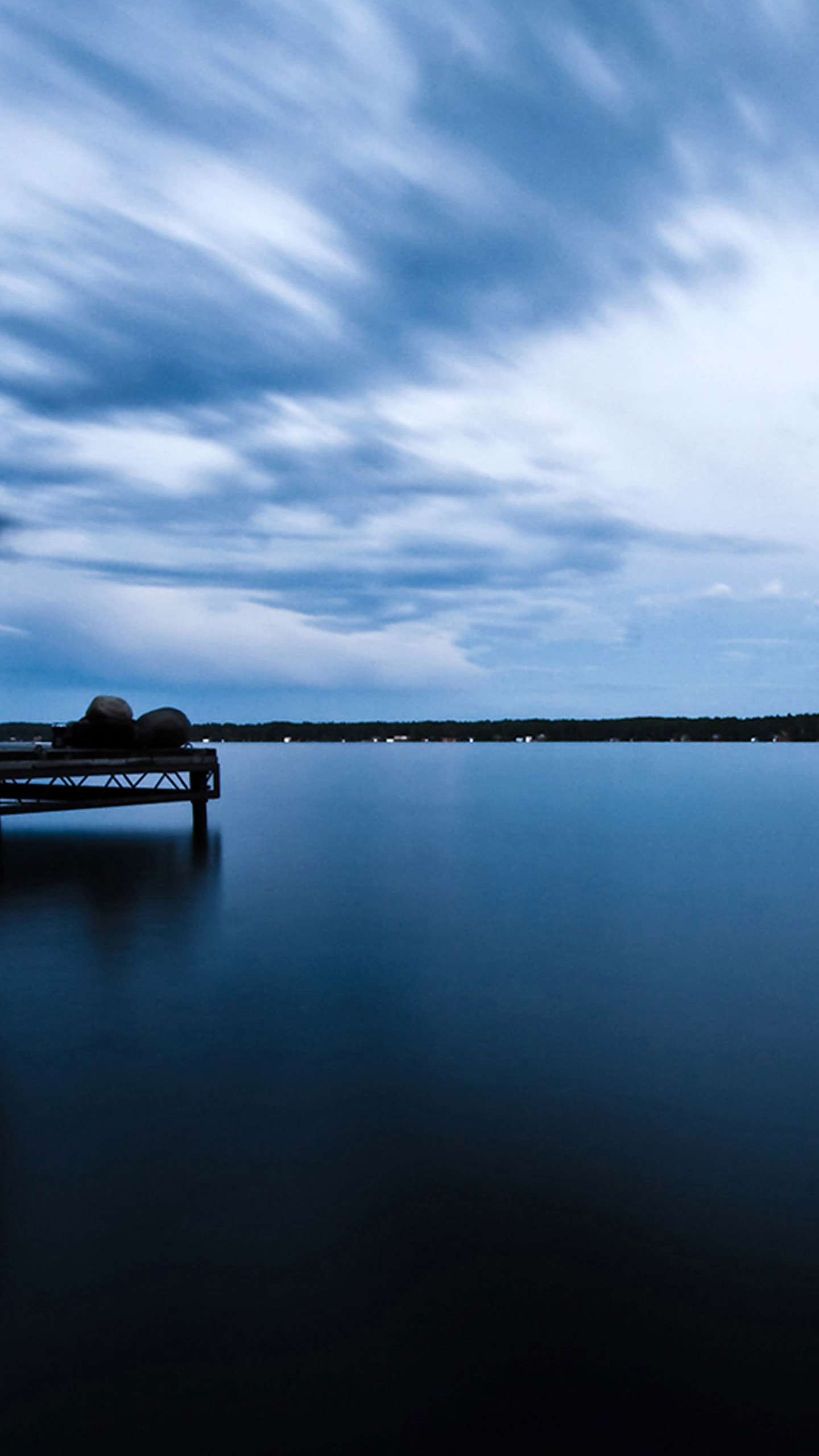 Description: A bench sitting on the edge of a lake under a cloudy sky with a body of water in the foreground.