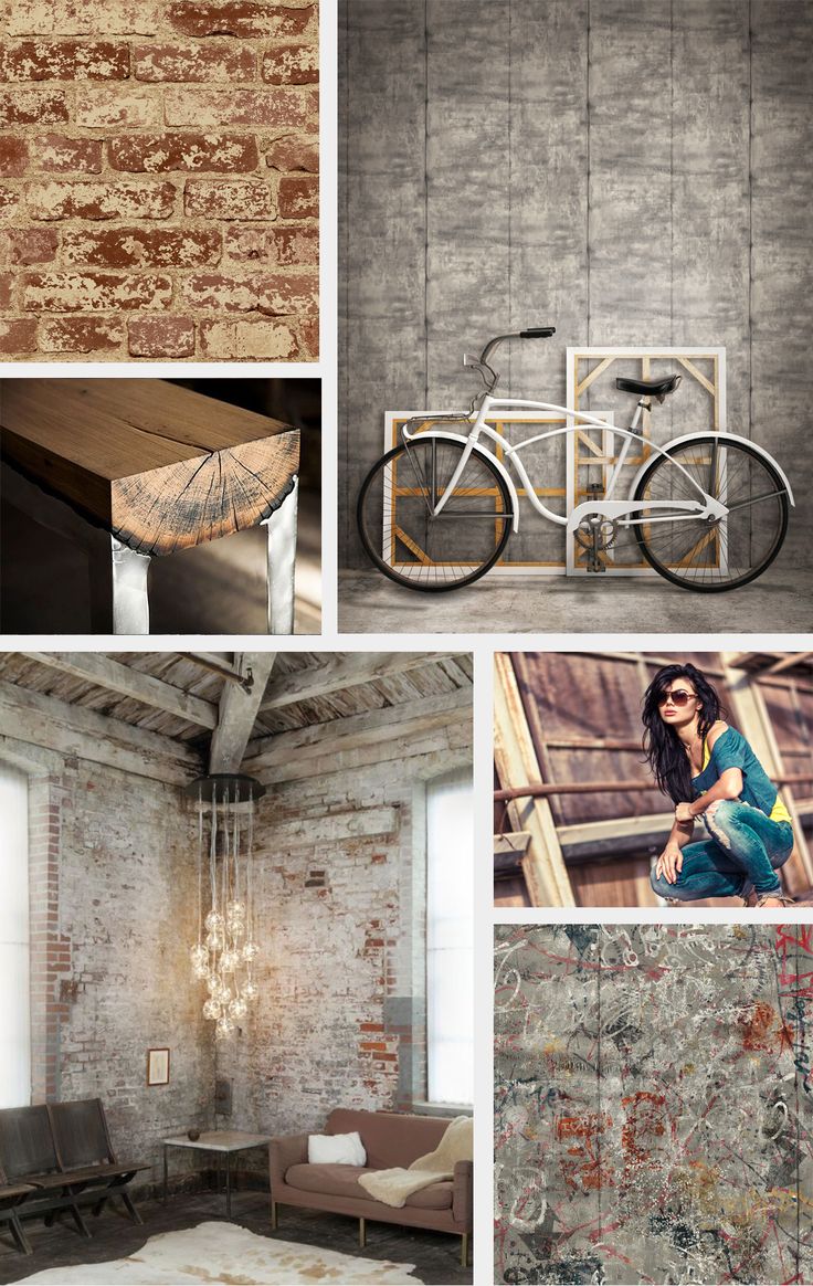 Description: A collage of photos with a bike and a couch and a table and a chair and a brick wall.