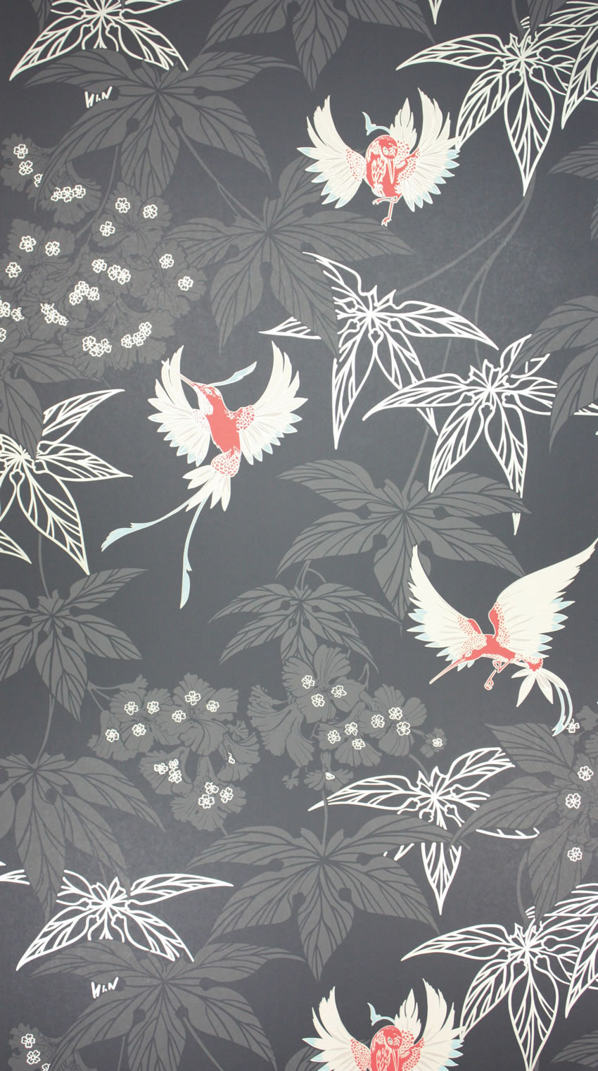Description: A wallpaper with a bird and flowers on it's side and a flowery background on the other side.