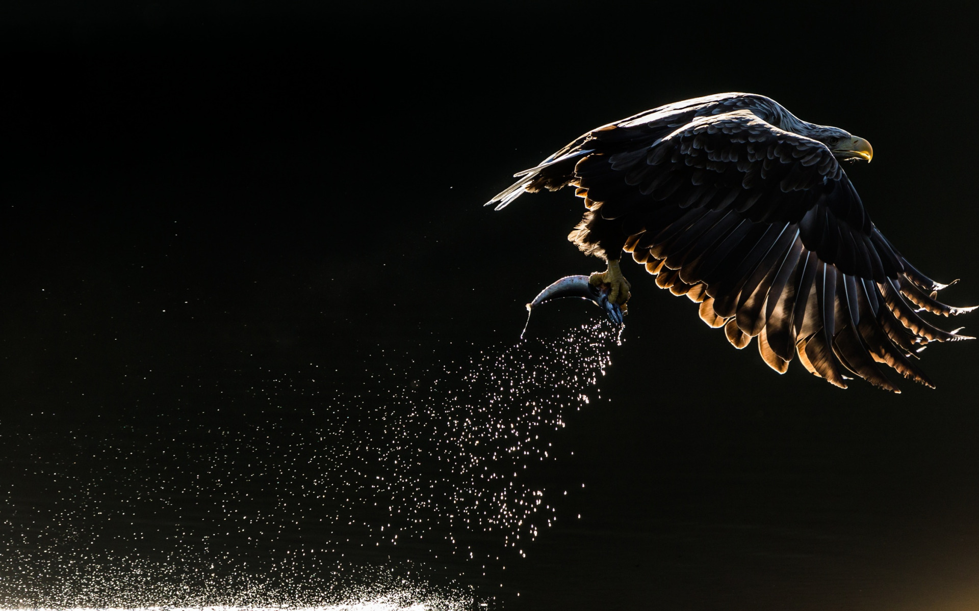 Description: A bird is flying over the water with its wings spread out and it is landing on the water surface.