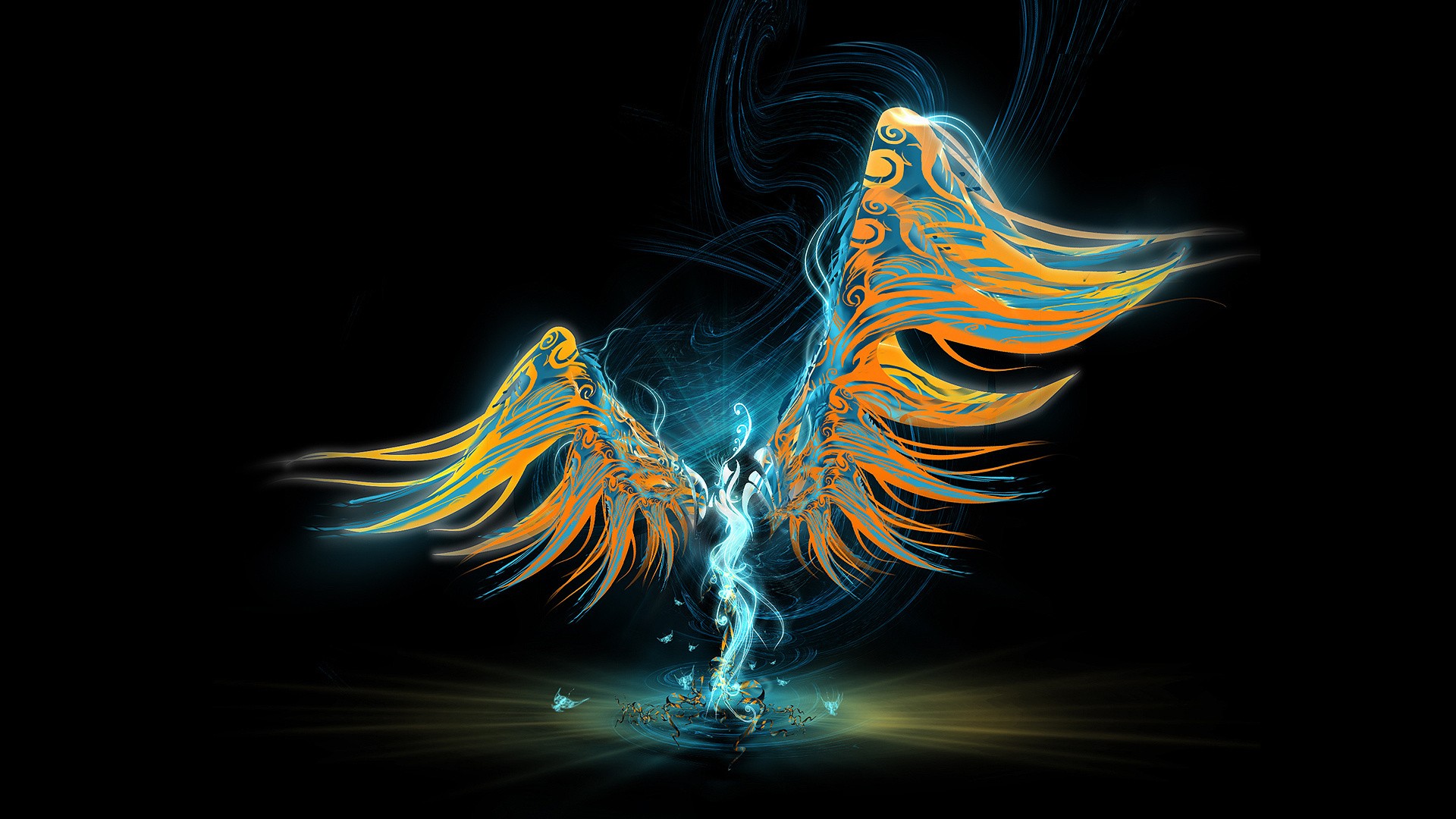 Description: A digital painting of a bird with wings spread out of it's body and wings spread out of its body.