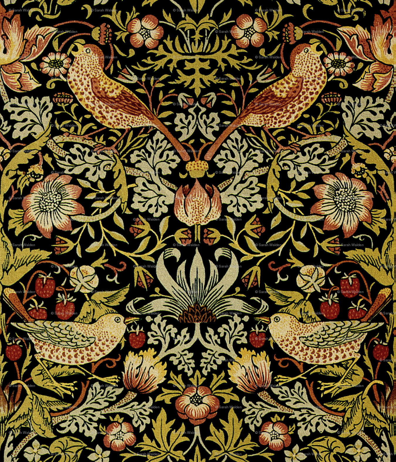 Description: A painting of birds and flowers on a black background with a red border around the edges of the image.