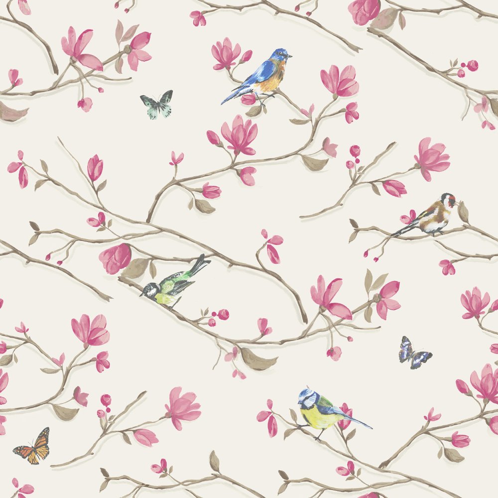 Description: A wallpaper with birds and flowers on it.