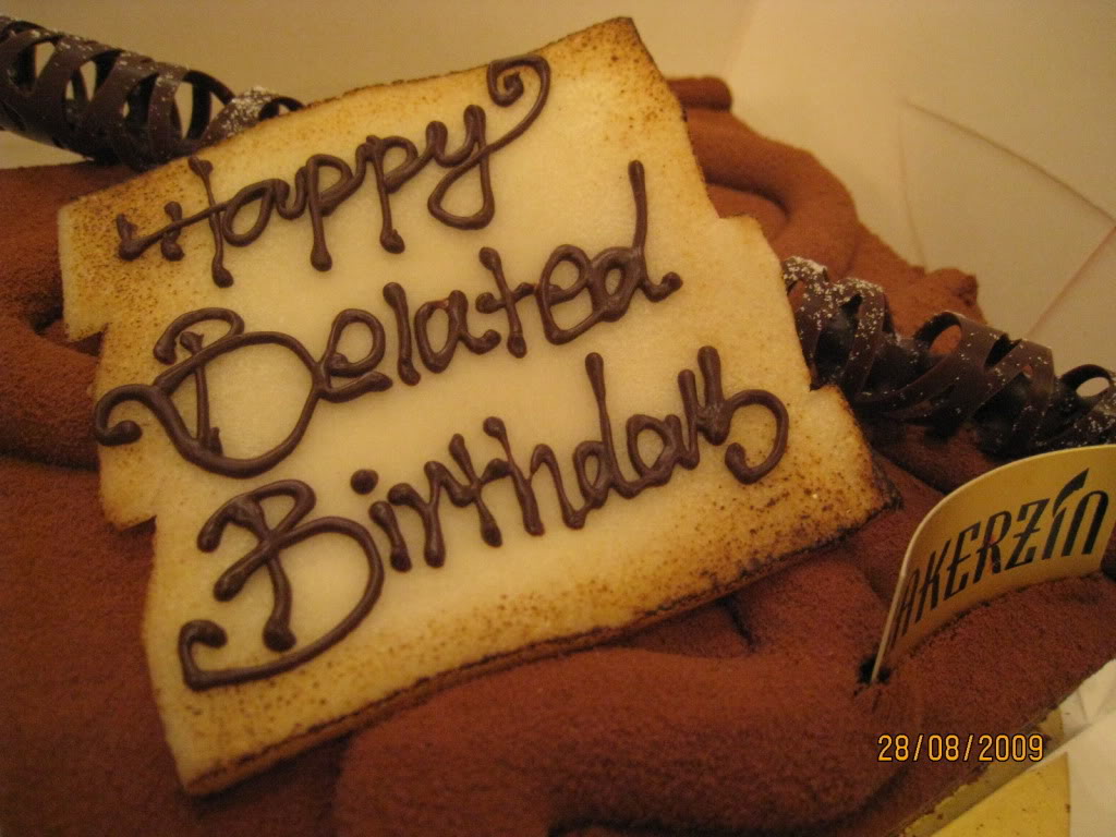 Description: A birthday cake with a message on it that says happy belridged birthday on it and a bat.